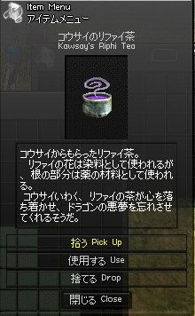 これはコウサイに話しかけてお茶をもらって飲むだけという、いたって簡単な